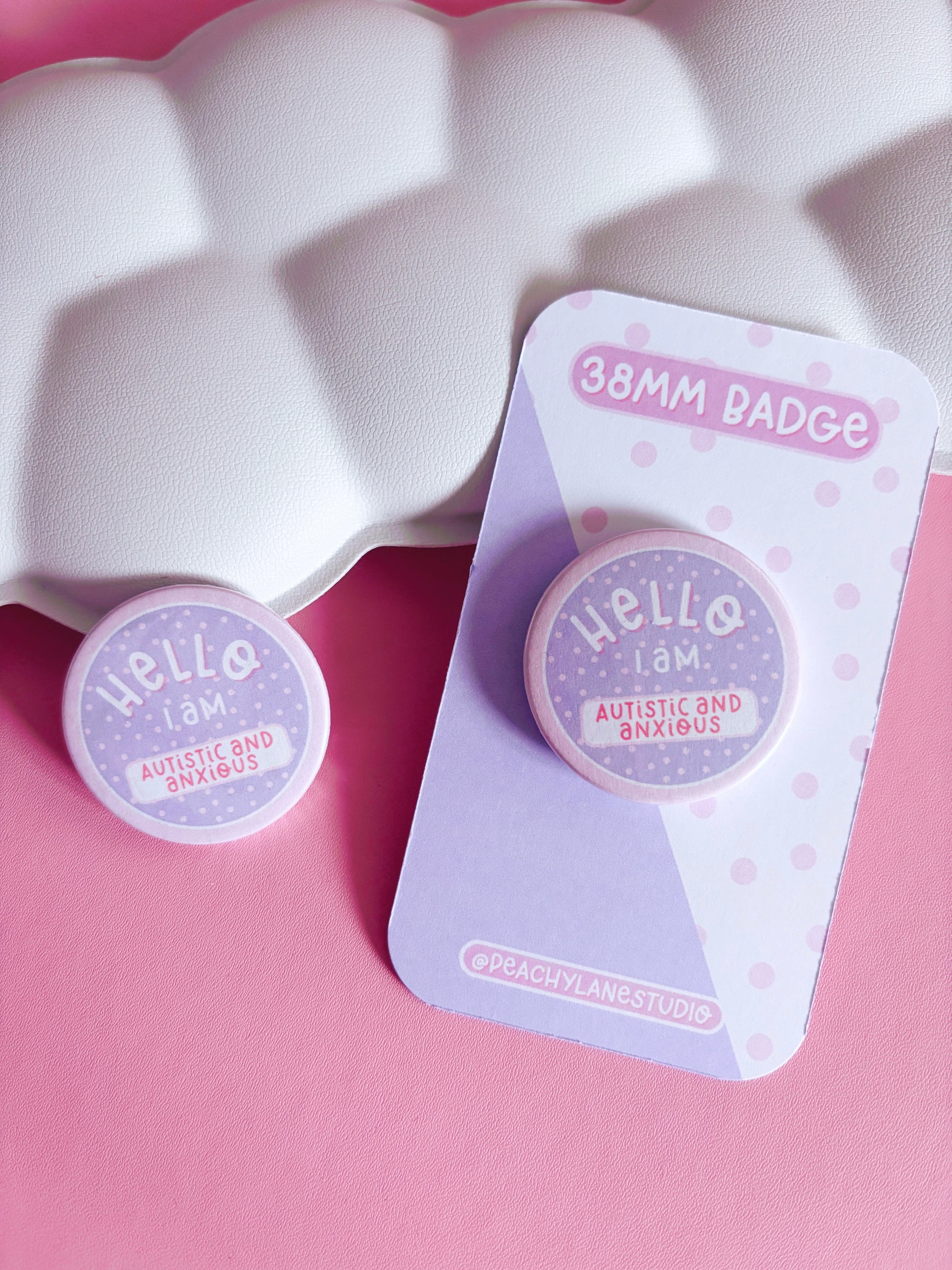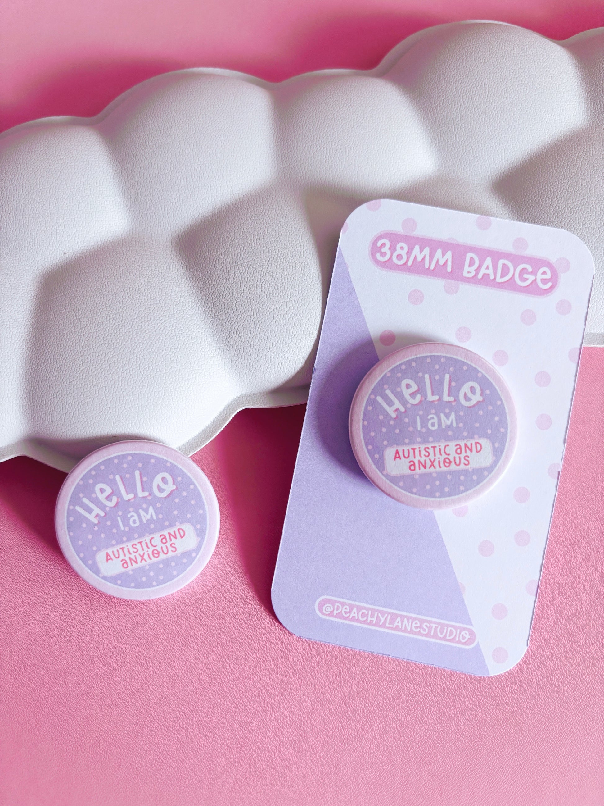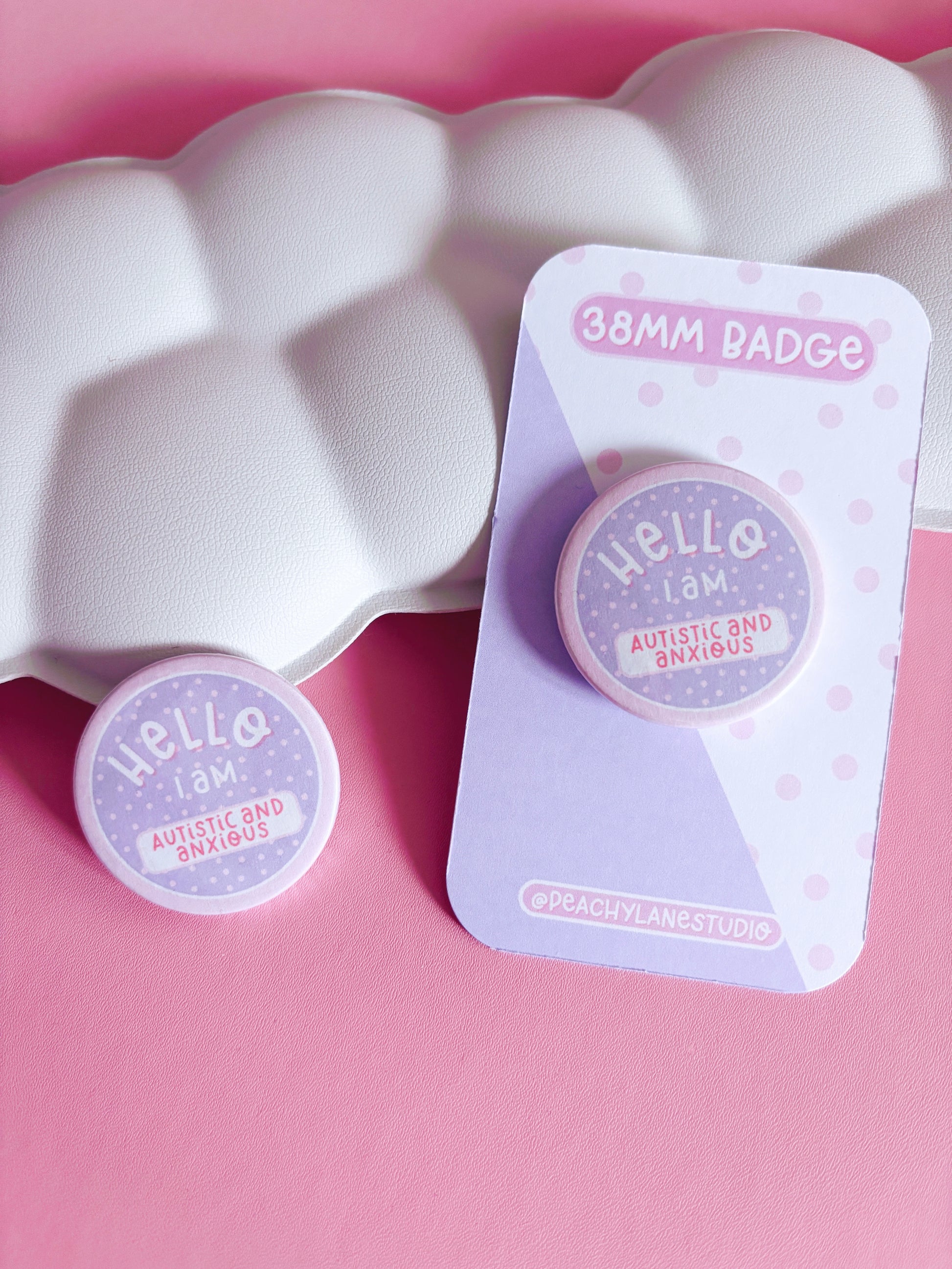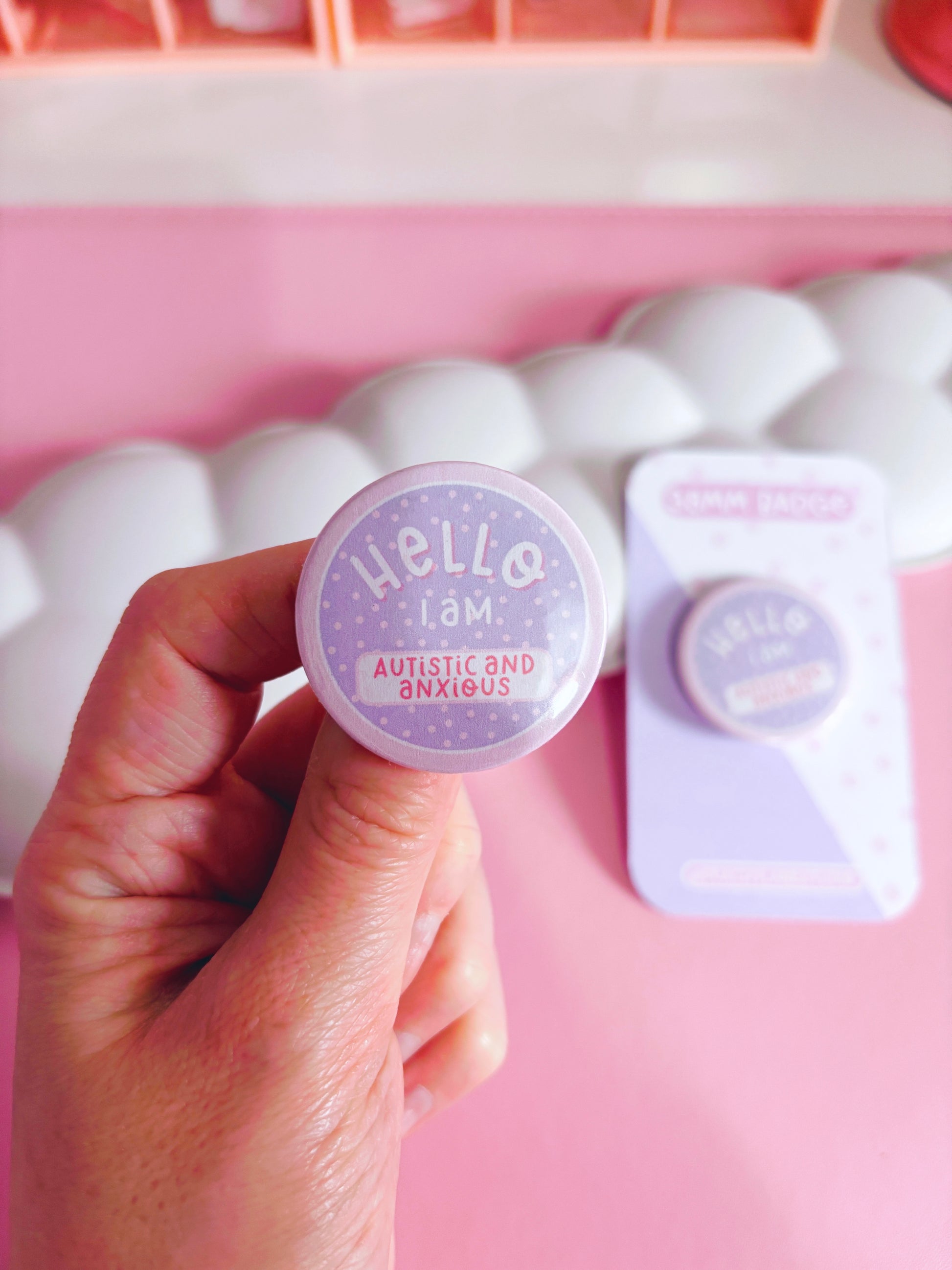 This cute 'hello I am autistic and anxious' button badge is perfect for accessorising your bags, jackets and lanyards.