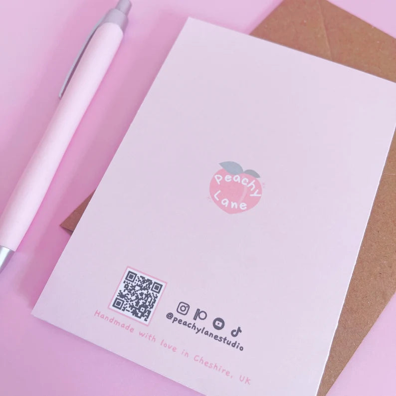 These handmade cards are printed onto 300gsm matte white card. Each card will be lovingly packed with an A6/A5 brown envelope and sealed inside a cello bag to keep it safe during delivery.