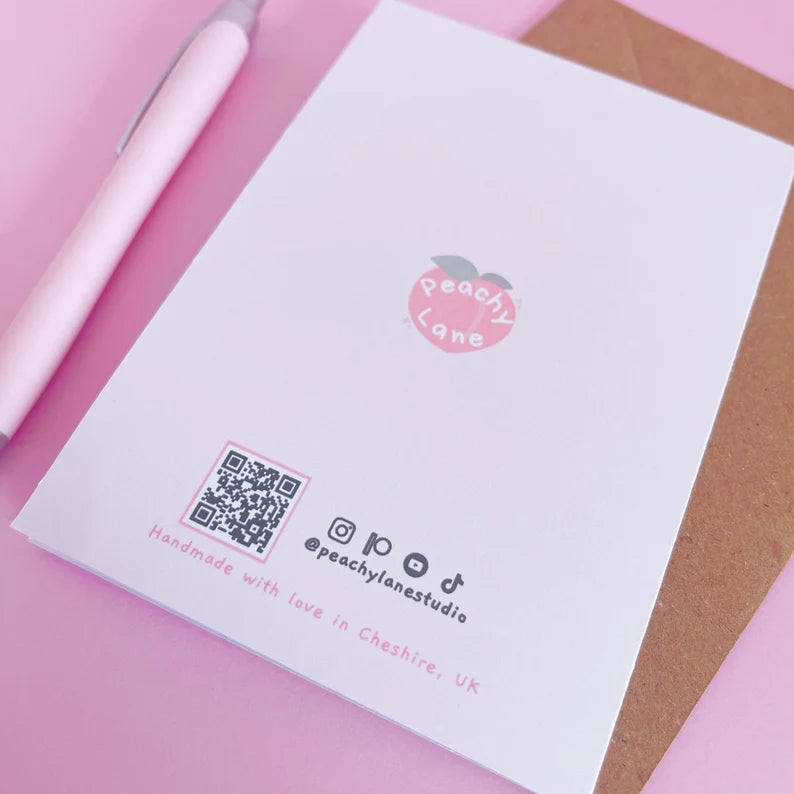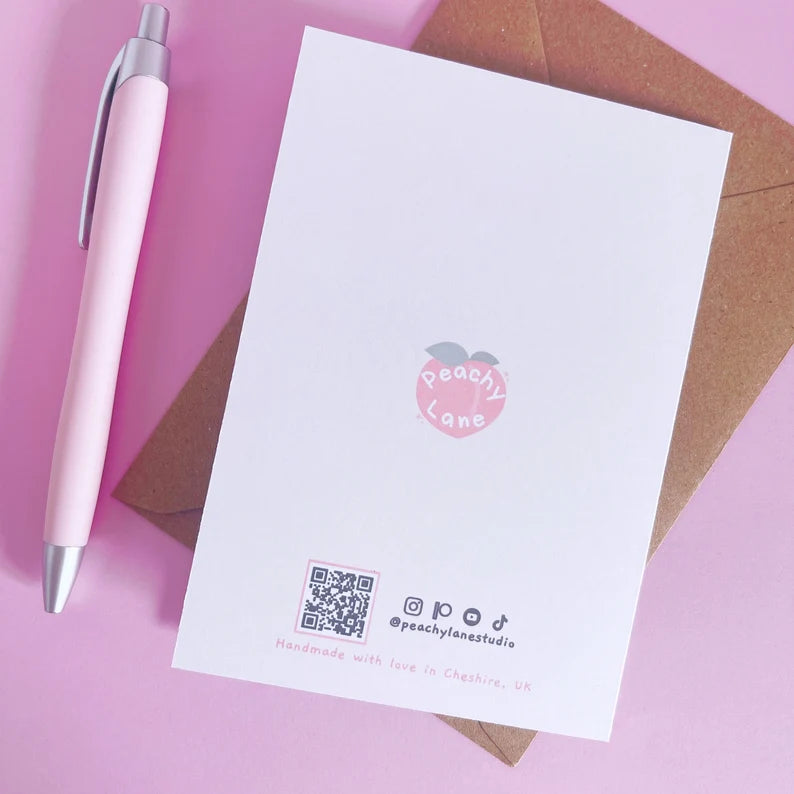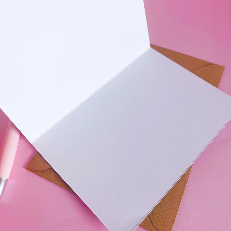 These handmade cards are printed onto 300gsm matte white card. Each card will be lovingly packed with an A6/A5 brown envelope and sealed inside a cello bag to keep it safe during delivery.